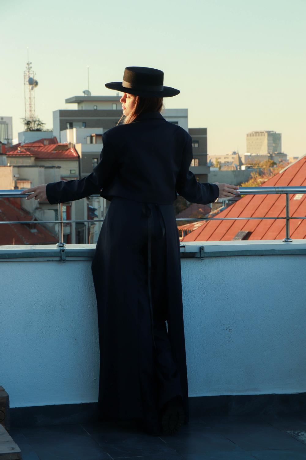 Sacou stofă din cașmir și lână bleumarin, cu un croi lejer până în talie.